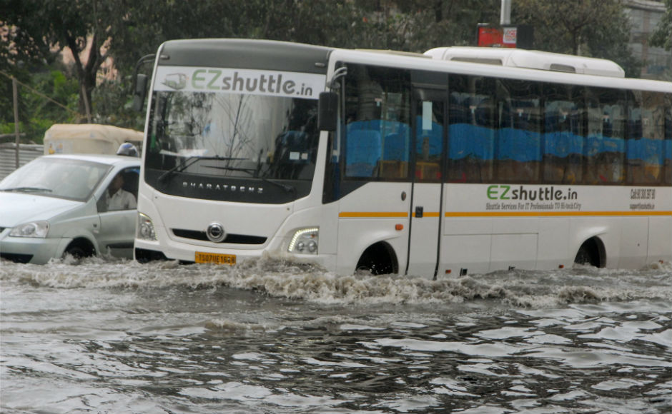 Roads in the city suffered heavy damages and traffic was moving at a snail’s pace at some places. Arrival and departure of flights at the Rajiv Gandhi International Airport was also affected. AP
