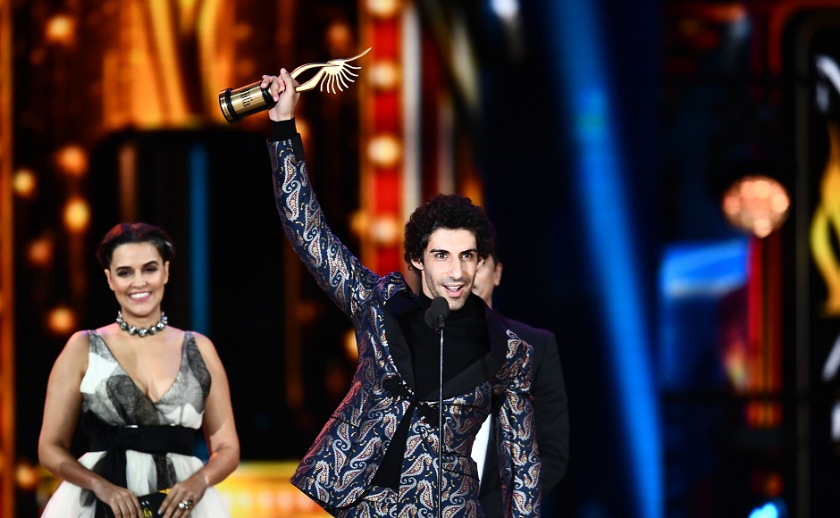 Winner of Performance in a Negative Role, Jim Sarbh for Neerja accepts the award during the 18th International Indian Film Academy (IIFA) Festival at the MetLife Stadium in East Rutherford, New Jersey, on July 15, 2017. / AFP PHOTO / JEWEL SAMAD