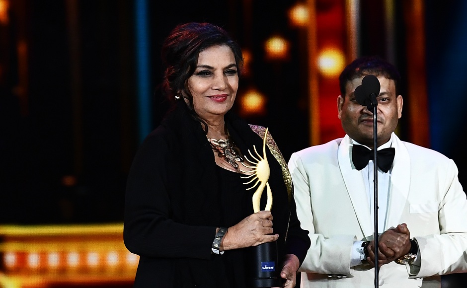 Winner of Performance in a Supporting Role - Feamle, Shabana Azmi for “Neerja” accepts the award during 18th International Indian Film Academy (IIFA) Festival at the MetLife Stadium in East Rutherford, New Jersey, on July 15, 2017. / AFP PHOTO / JEWEL SAMAD