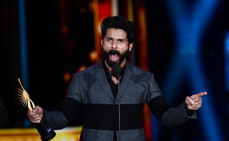 Winner of Best Performance in a Leading Role - Male, Shahid Kapoor for “Udta Punjab” accepts his award during 18th International Indian Film Academy (IIFA) Festival at the MetLife Stadium in East Rutherford, New Jersey, on July 16, 2017. / AFP PHOTO / Jewel SAMAD
