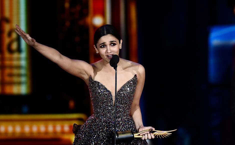 Winner of Best Performance in a Leading Role - Female, Bollywood actress Alia Bhatt for “Udta Punjab” accepts her award during 18th International Indian Film Academy (IIFA) Festival at the MetLife Stadium in East Rutherford, New Jersey, on July 16, 2017. / AFP PHOTO / Jewel SAMAD