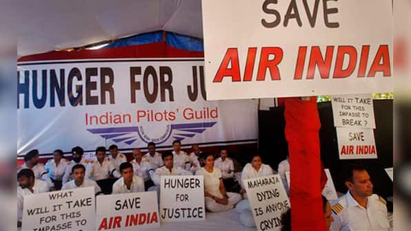 Air India pilots who have been on strike since 7 May and pledging their allegiance to the Indian Pilots Guild participated in a hunger strike against Air India’s management in Mumbai today.