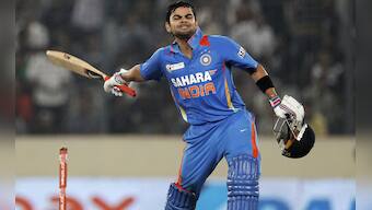 [caption id=“attachment_249421” align=“alignleft” width=“940” caption=" Virat Kohli celebrates scoring a century during the Asia Cup cricket match against Pakistan in Dhaka. Kohli’s 183-run knock helped India win the match. AP"] [/caption] [caption id=“attachment_249423” align=“alignleft” width=“940” caption=" Virat Kohli celebrates after reaching his century during the One Day International match between India and Sri Lanka at Bellerive Oval at Hobart, Australia. Getty Images"] [/caption] [caption id=“attachment_249425” align=“alignleft” width=“940” caption=" Virat Kohli celebrates his century during day three of the Fourth Test Match between Australia and India at Adelaide Oval. This was his first test century. Getty Images"] [/caption] [caption id=“attachment_249427” align=“alignleft” width=“940” caption=" Virat Kohli of India celebrates reaching his century during the 5th Natwest One Day International Series match between England and India at the Swalec Stadium Cardiff, Wales. Getty Images"] [/caption] [caption id=“attachment_249428” align=“alignleft” width=“940” caption=“Virat Kohli raises his bat on reaching his century during the opening game of the 2011 World Cup between Bangladesh and India at the Shere-e-Bangla National Stadium in Bangladesh. Getty Images”] [/caption]