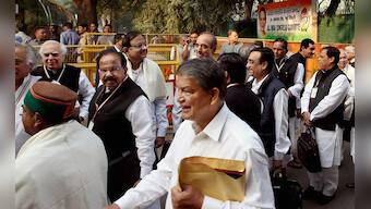 Union Ministers and Senior Congress leaders MM Pallamraju, Jairam Ramesh and Harish Rawat leave in a bus for Surajkund to attend the party's 'Samvad Baithak'. Kamal Singh/PTI
