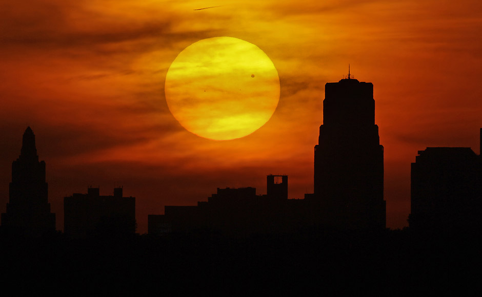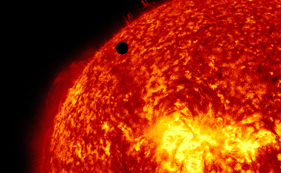 Skygazers across the world are in for a rare astronomical treat as the planet Venus moves across the face of the sun appearing as a small dark disc today. Images from across the world.