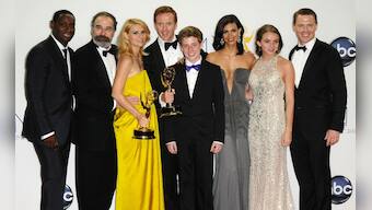 David Harewood, Mandy Patinkin, Claire Danes, Damian Lewis, Jackson Pace, Morena Baccarin, Morgan Saylor and Diego Klattenhoff, pose after Homeland wins Outstanding Drama Series at the 64th Primetime Emmy Awards. Getty Images