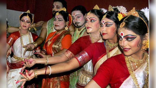 Varanasi: Artists performing a group dance at ISKCON Temple on the occasion of Shri Krishna Janmashtami in Varanasi on Thursday night. PTI