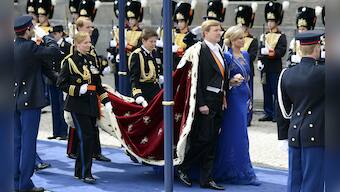 Crown Princess Catharina-Amalia (C) Princess Alexia (L) and Princess Ariane with guests arrive to attend the inauguration at Nieuwe Kerk church in Amsterdam. Reuters