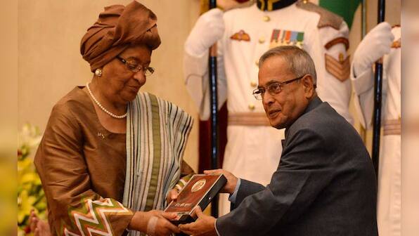 President Pranab Mukherjee today conferred Indira Gandhi Prize for Peace, Disarmament and Development for 2012 on Liberia President Ellen Johnson Sirleaf.