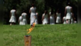 [caption id=“attachment_305254” align=“alignleft” width=“940” caption=“The London 2012 torch is lit at Ancient Olympia during the final dress rehearsal on 9 May. Jamie McDonald/Getty Images”] [/caption] [caption id=“attachment_305325” align=“alignleft” width=“940” caption=“Actress Ino Menegaki dressed as High Priestess lights the Olympic flame at the Temple of Hera during the Lighting Ceremony of the Olympic Flame at Ancient Olympia. Jamie McDonald/Getty Images”] [/caption] [caption id=“attachment_305359” align=“alignleft” width=“940” caption=“Actress Ino Menegaki dressed as High Priestess lights the Olympic flame at the Temple of Hera during the Lighting Ceremony of the Olympic Flame at Ancient Olympia. Jamie McDonald/Getty Images”] [/caption] [caption id=“attachment_305327” align=“alignnone” width=“940” caption=“Actress Ino Menegaki dressed as High Priestess lights the Olympic flame at the Temple of Hera during the Lighting Ceremony of the Olympic Flame at Ancient Olympia. Jamie McDonald/Getty Images”][/caption] [caption id=“attachment_305330” align=“alignleft” width=“940” caption=“Ino Menegaki passes on the Olympic flame to Spyros Gianniotis, a 32-year-old Liverpool-born swimmer, who won a silver medal for Greece in the 5-kilometer open water event four years ago in Beijing, during the lighting of the flame ceremony. Kostas Tsironis/AP”] [/caption]