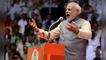 Gujarat Chief Minister Narendra Modi addressing on second day of Party National Council Meeting in New Delhi on Sunday. PTI