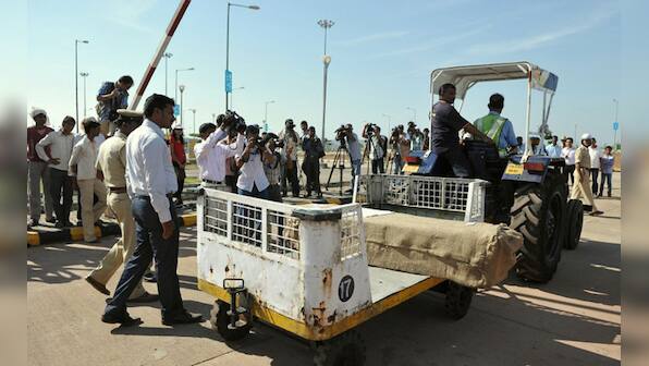 The coffin carrying the body of India-born nurse Jacintha Saldanha, is brought out of the Bajpe Airport in Mangalore. AFP
