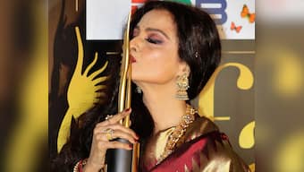 Bollywood actor Rekha kisses her Lifetime Achievement Award trophy at the International Indian Film Academy (IIFA) Awards. Rekha turns 58 today. Reuters