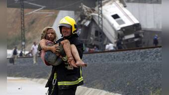 Rescuers tend to a victim next to a derailed car at the site of a train accident near the city of Santiago de Compostela. The train which carried 238 passengers originated in Madrid and was bound for the northwestern town of Ferrol. AFP