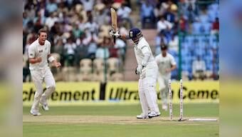 Even in the first innings, Sachin lost his wicket in almost similar fashion... this time it was Doug Bracewell who was the wicket-taker. Sunil Gavaskar pointed out that Sachin's footwork seemed a tad slow. AP