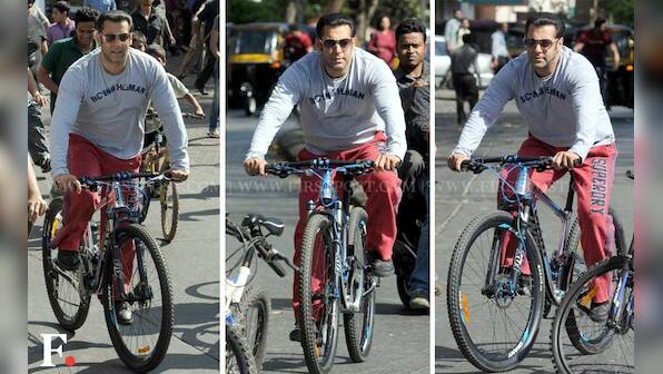 Salman Khan riding his bicycle through the suburb on the occasion of Car Free Day. Sachin Gokhale/Firstpost