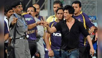 [caption id=“attachment_312406” align=“alignleft” width=“940” caption=" Kolkata Knight Riders co-owner Shah Rukh Khan (R) gestures towards a security guard blowing a whistle to direct children accompanying him off the playing field after the IPL Twenty20 cricket match between Mumbai Indians and Kolkata Knight Riders at The Wankhede Stadium in Mumbai. AFP"] [/caption] [caption id=“attachment_312409” align=“alignleft” width=“940” caption=" Kolkata Knight Riders co-owner Shah Rukh Khan (R) gestures towards a security guard blowing a whistle to direct children accompanying him off the playing field after the IPL Twenty20 cricket match between Mumbai Indians and Kolkata Knight Riders at The Wankhede Stadium in Mumbai. AFP"] [/caption] [caption id=“attachment_312410” align=“alignleft” width=“940” caption=" Kolkata Knight Riders co-owner Shah Rukh Khan (L) reacts after a security guard (R) directed children accompanying Khan, off the playing field after the IPL Twenty20 cricket match between Mumbai Indians and Kolkata Knight Riders at The Wankhede Stadium. AFP"] [/caption] [caption id=“attachment_312411” align=“alignleft” width=“940” caption=" Kolkata Knight Riders co-owner Shah Rukh Khan (L) reacts after a security guard (R) directed children accompanying Khan, off the playing field after the IPL Twenty20 cricket match between Mumbai Indians and Kolkata Knight Riders at The Wankhede Stadium AFP"] [/caption]