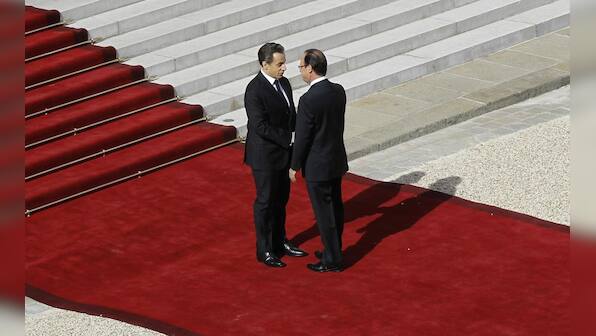 Francois Hollande was sworn in as the president of France following a ceremony at the Elysee Palace in central Paris. Image of the handover ceremony.