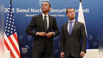 [caption id=“attachment_255963” align=“alignleft” width=“940” caption=“Bad boys, bad boys watchya gonna do: President Barack Obama, left, and Russian President Dmitry Medvedev stand together at the end of a bilateral meeting at the Nuclear Security Summit in Seoul, South Korea AP”] [/caption] [caption id=“attachment_255969” align=“alignleft” width=“940” caption=“And that is how you do the Nuclear Dance:South Korean President Lee Myung-bak changes places with Australian Prime Minister Julia Gillard during a welcome ceremony for the Nuclear Security Summit at the Coex Center, in Seoul, South Korea. AP”] [/caption] [caption id=“attachment_255971” align=“alignleft” width=“940” caption=“You now a member of the group: South Korean President Lee Myung-bak greets the Prime Minister of India during a welcome ceremony for the Nuclear Security Summit at the Coex Center, in Seoul, South Korea”] [/caption] [caption id=“attachment_255973” align=“alignleft” width=“940” caption=“Don’t worry one day you’ll be really welcome too: South Korean President Lee Myung-bak greets Pakistani Prime Minister Syed Yusuf Raza Gilani during a welcome ceremony for the Nuclear Security Summit at the Coex Center, in Seoul, South Korea. AP”] [/caption] [caption id=“attachment_255974” align=“alignleft” width=“940” caption=“Let’s not talk economy today, eh: Chinese President Hu Jintao, right, and President Barack Obama, left, take their seats to begin their bilateral meeting in Seoul, South Korea. AP”] [/caption]