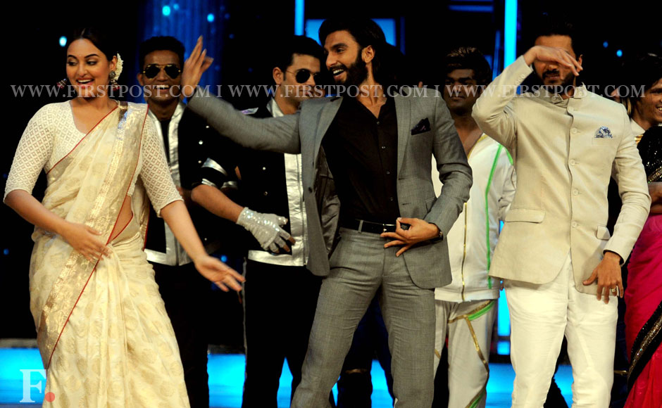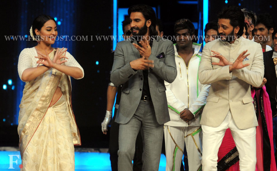 Sonakshi Sinha, Ranveer Singh and host of the dance show Riteish Deshmukh dance at the event. Firstpost/Sachin Gokhale.
