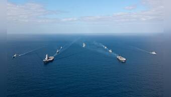 INS Vikramaditya on its voyage home accompanied by other naval ships. Image courtesy Indian Navy