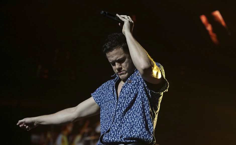 Singer/songwriter Dan Reynolds, of the Imagine Dragons, performs on stage at the Capitol One Arena on Sunday, 5 November, 2017, in Washington. Image from AP