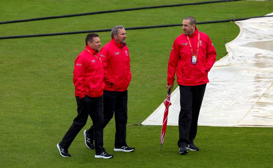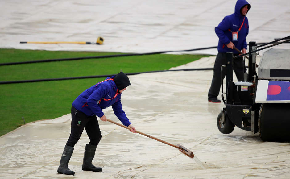Groundsman had a tough day in the field. It has been raining in Bristol since past few days and Tuesday was no different. Despite the pitch and peripheries being covered, the groundsmen had to soak the water collected on top of the cover. Reuters