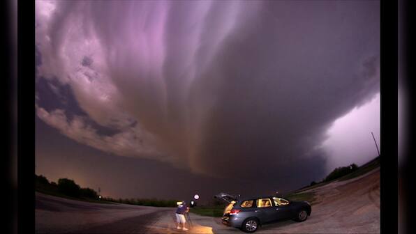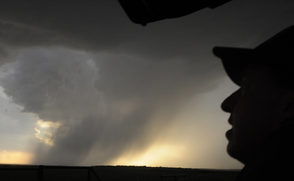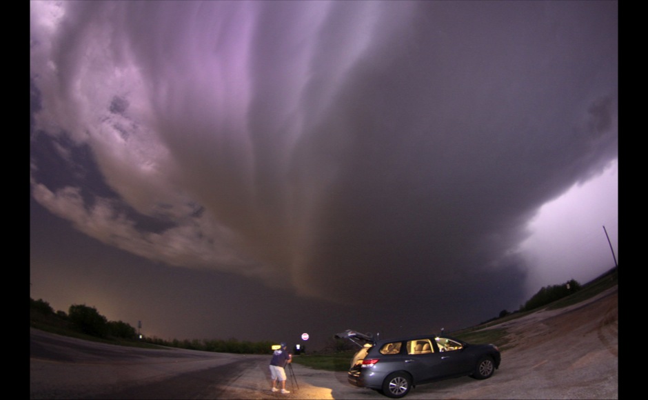 Storm chaser photographer Brad Mack watches thunderstorms supercells pass through areas in Kamay, Texas late April 23, 2014. The thunder storms on Wednesday were a precursor of what’s forecast for this coming weekend Saturday, Sunday, and Monday that could be the most significant multi-day tornado outbreak in the U.S. since 2011. REUTERS/Gene Blevins