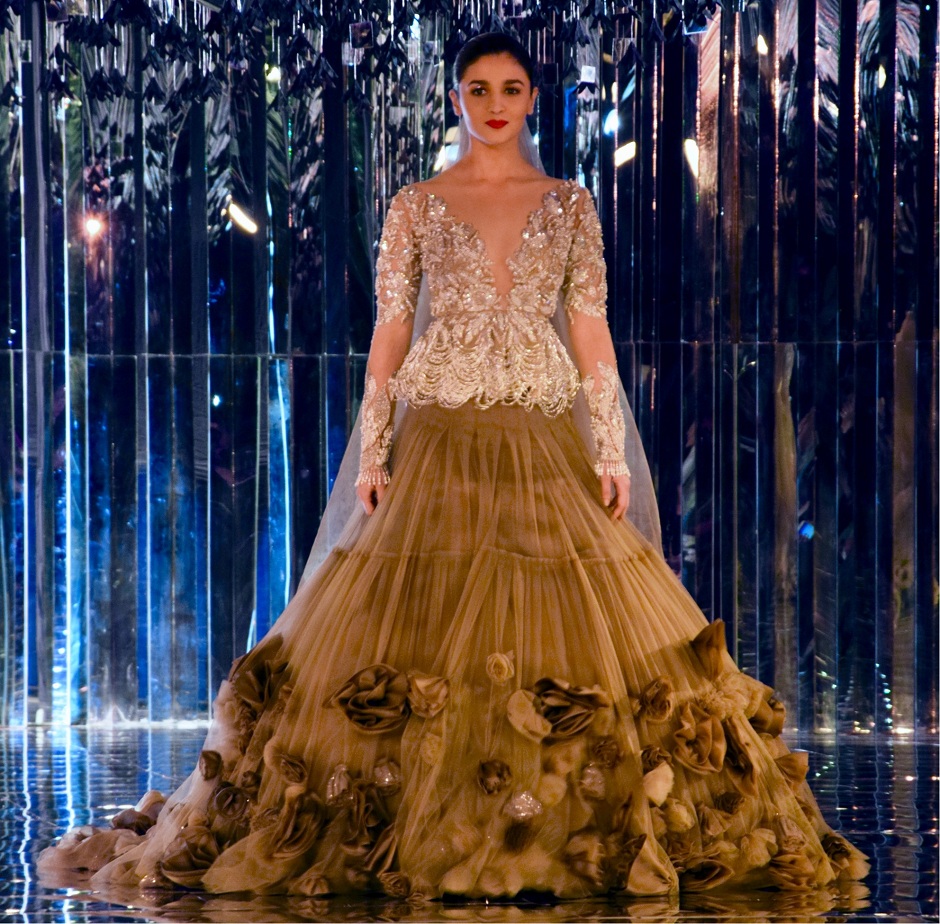 Bollywood actor Alia Bhatt walks for Manish Malhotra during FDCI’s India Couture Week 2017 at the Taj Palace hotel on 30 July, 2017 in New Delhi, India. (Photo by Rubina A. Khan/Getty Images)