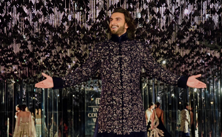 Bollywood actor Ranveer Singh walks for Manish Malhotra during FDCI’s India Couture Week 2017 at the Taj Palace hotel on 30 July, 2017 in New Delhi, India. (Photo by Rubina A. Khan/Getty Images)
