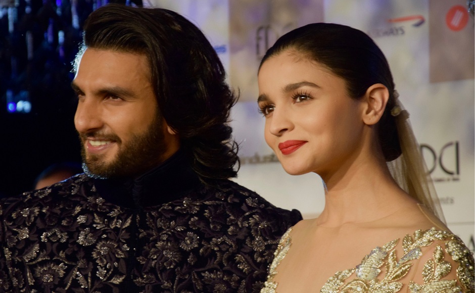 Bollywood actors, Ranveer Singh and Alia Bhatt at the FDCI’s India Couture Week 2017 at the Taj Palace hotel on 30 July, 2017 in New Delhi, India. (Photo by Rubina A. Khan/Getty Images)