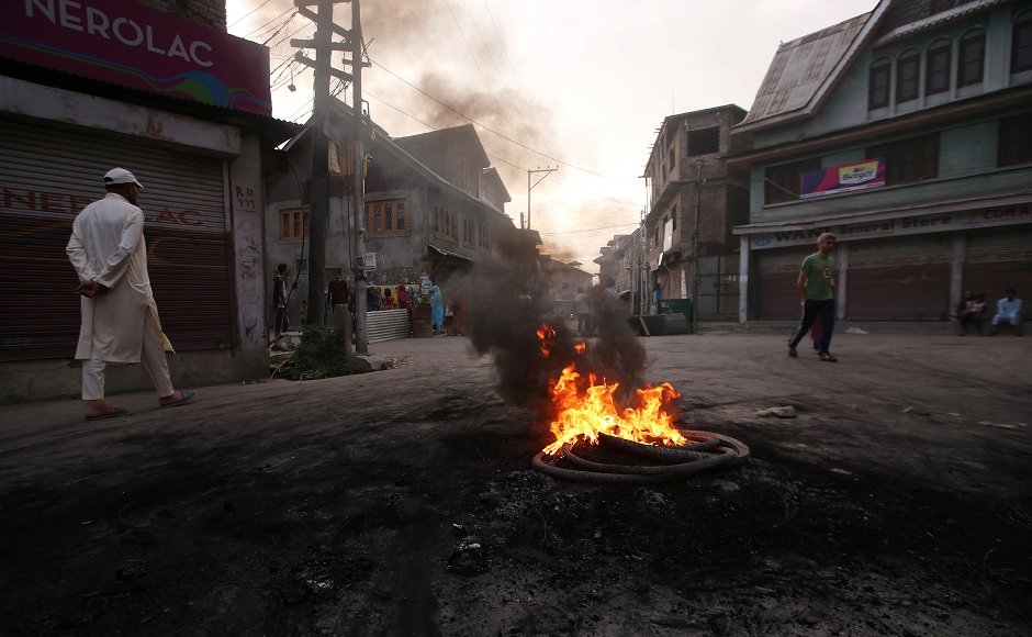 Vigilante groups set informal deadlines to carry out daily activities in some parts of the Valley before enforcing a day-time ‘civil curfew’, a move to protest the Centre’s decision to repeal the special status given to Jammu and Kashmir. Seen here is a man walking past burning tyres during a protest in Srinagar. Reuters