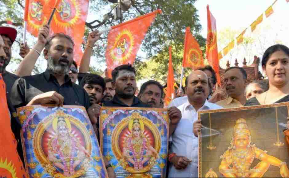 Lord Ayyappa devotees in Bengaluru stage a protest against the entry of two women of menstruating age into the Sabarimala temple on Thursday. PTI