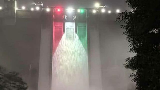 The colours of the Tricolour were beamed onto the cascading waters from the Idukki Dam, which is one of the highest arch-dams in Asia. Image Courtesy: @roshyminister/Twitter