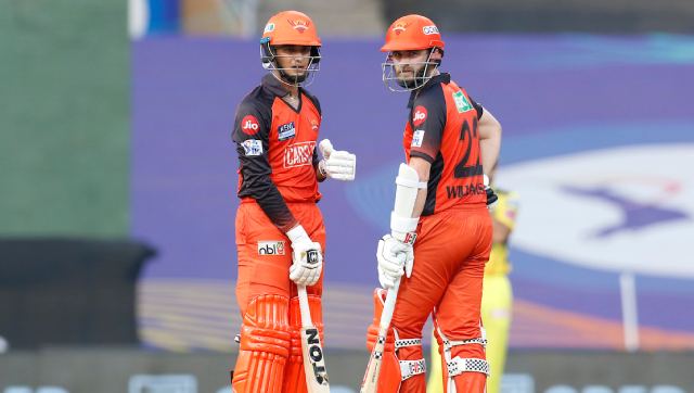 SRH captain Kane Williamson (right) scored a patient 40-ball 32 while anchoring the chase with Abhishek Sharma. The duo added 89 runs for the opening wicket. Sportzpics/IPL