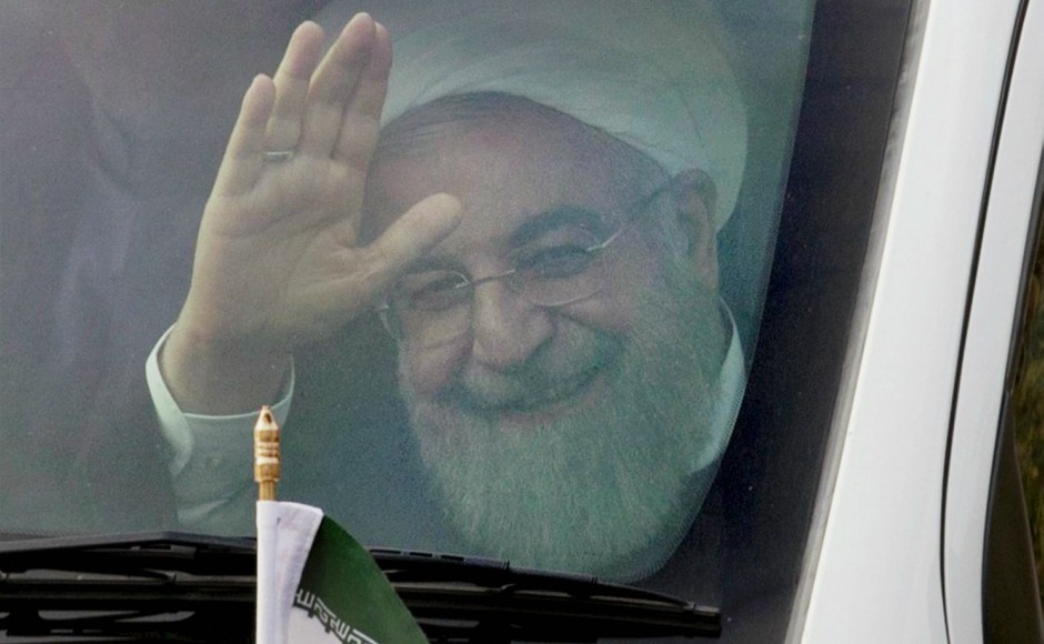 Rouhani greeted Muslim leaders and scholars after a meeting in Hyderabad. Reuters