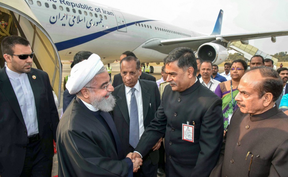 Iranian president Hassan Rouhani arrived in Hyderabad on Thursday on a three-day visit to India. PTI