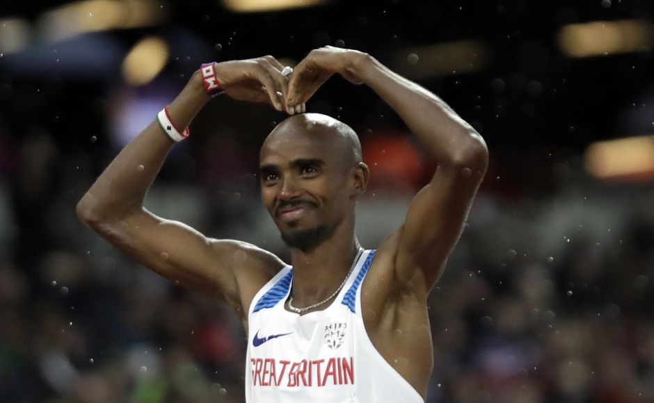 Britain’s Mo Farah was back at the Olympic Stadium and got the sellout crowd roaring for his heat in the 5,000 metres. AP
