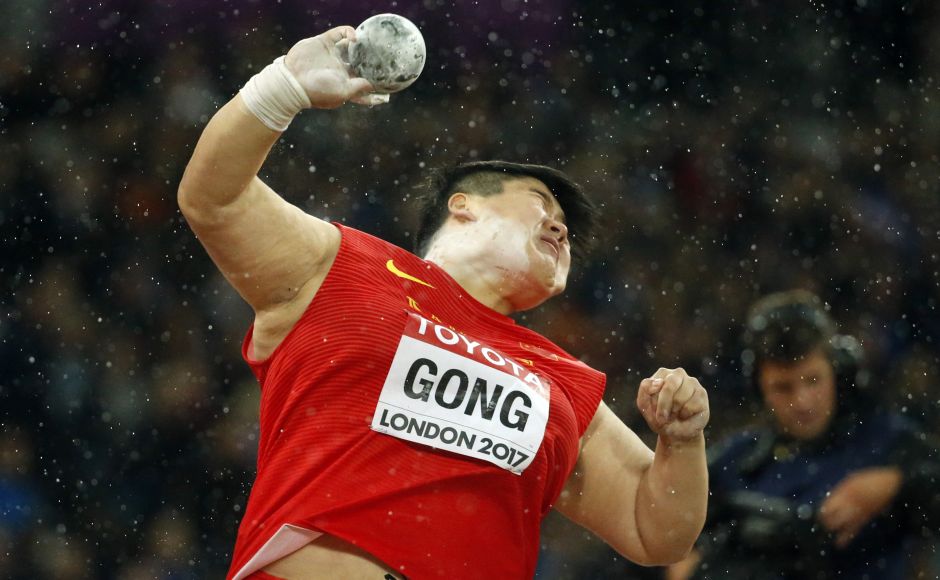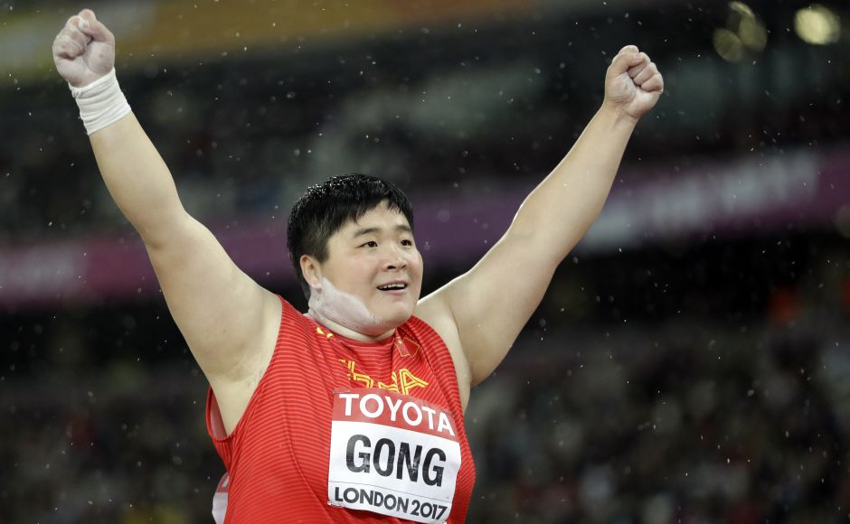 Gong Lijiao took the lead on her penultimate throw and won with a toss of 19.94 metres. AP