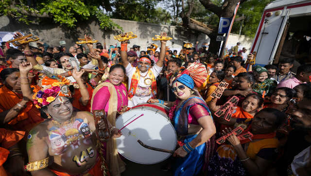 Devotees participate in the annual Rath Yatra, or Chariot procession of Lord Jagannath, in Ahmedabad, India, Friday, 1 July, 2022. AP
