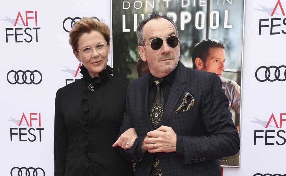 Annette Bening (L) was joined by Elvis Costello at the screening. Film Stars Don’t Die in Liverpool depicts the tragic life of Hollywood sensation Gloria Grahame, played by Benning. AP