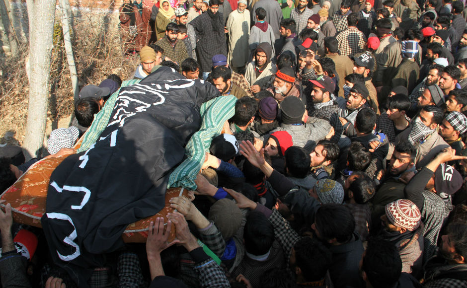 One of the militants, identified as Sameer Wani was buried in his native village at Chaigund Shopian on Wednesday. Firstpost/ Sameer Mushtaq
