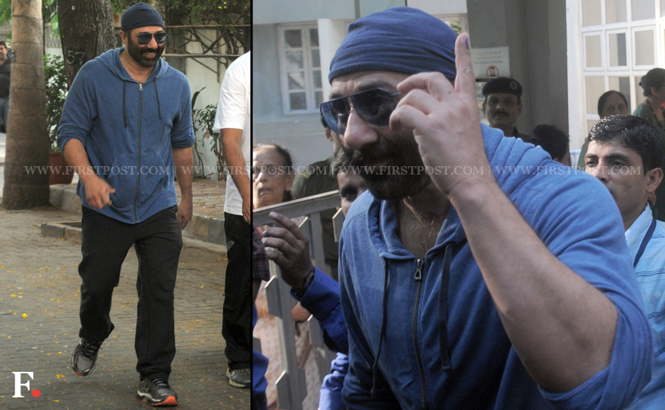 Dharmendra shows off the inked finger after voting. Sachin Gokhale/Firstpost