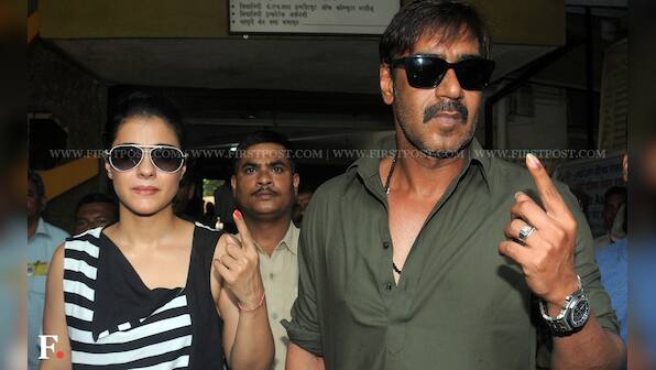 Kajol and Ajay Devgn after casting their ballot flaunt their inked fingers to the cameras. Sachin Gokhale/Firstpost