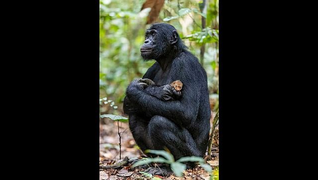 The Bonobo and His Pet: The last great ape to be described, the Bonobo, is one of our closest living relatives. Here, a wild Bonobo who caught a mongoose pup is looking after it like a pet. Image: Christian Ziegler/Nature inFocus Photography Awards 2023
