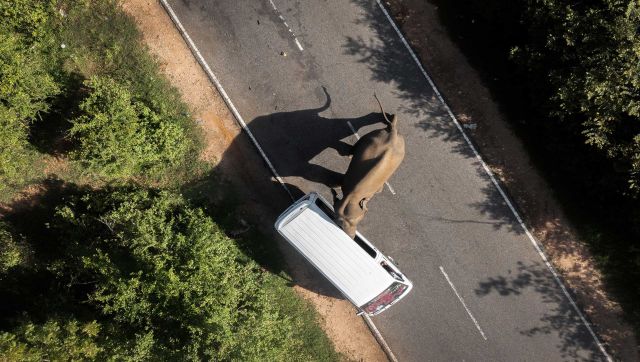Giants in Peril: Wild elephants are a common sight on the roads of Sabaragamuwa Province. Here, an angry elephant shatters the windows and almost topples the vehicle over. Image: Lalith Ekanayake/Nature inFocus Photography Awards 2023