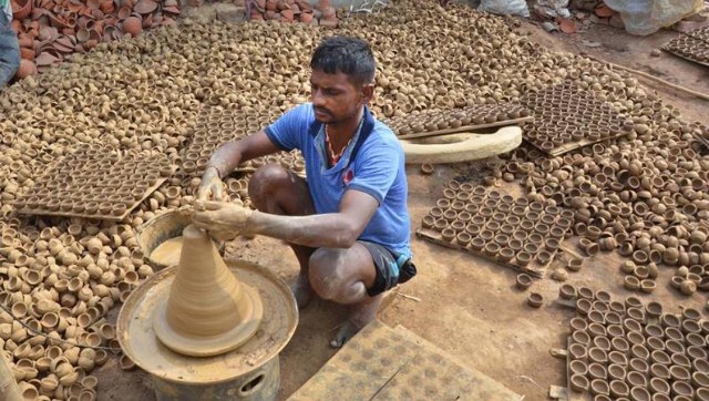 Ahead of the festival, here’s how shops and markets are getting ready for customers. Here’s a potter in Ranchi making earthen lamps for sale ahead of Diwali. PTI