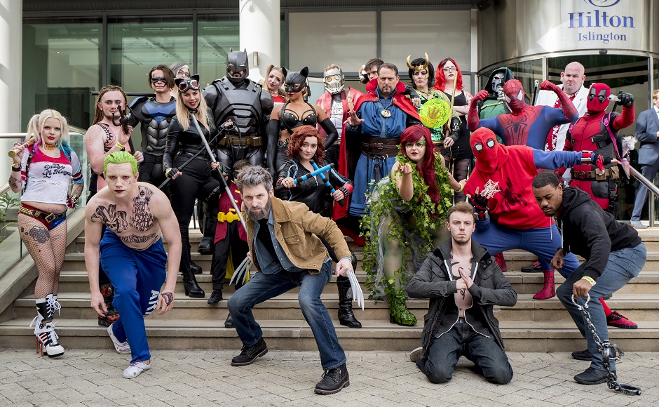 People dressed as Gamora, Captain America and Iron Man attended the London Super Comic Con