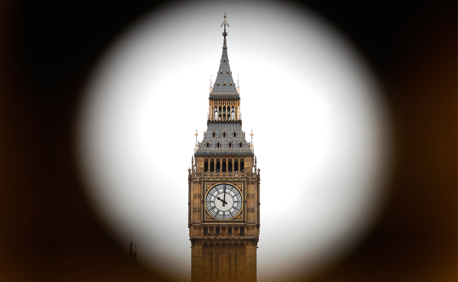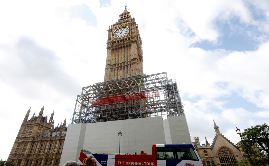 The Elizabeth Tower, as it is officially known, is said to be the most photographed building in the UK. In this 3 August, 2017 file photo, scaffolding is erected around the Elizabeth Tower, which includes the landmark Big Ben clock, as part of ongoing conservation efforts at the Palace of Westminster in London. AP