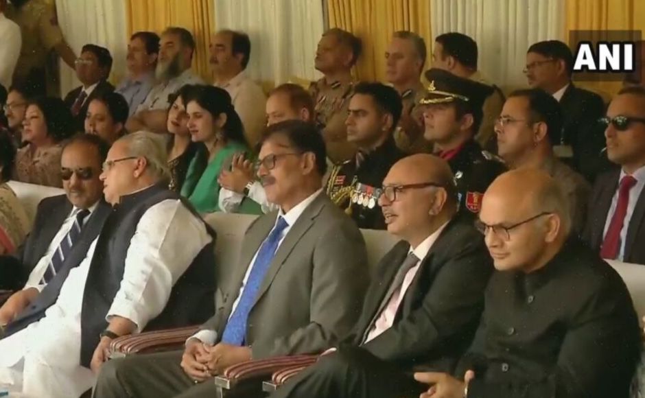 At the Mini Stadium in Jammu, the governor’s advisor Farooq Khan reviewed the parade during the celebrations. PTI